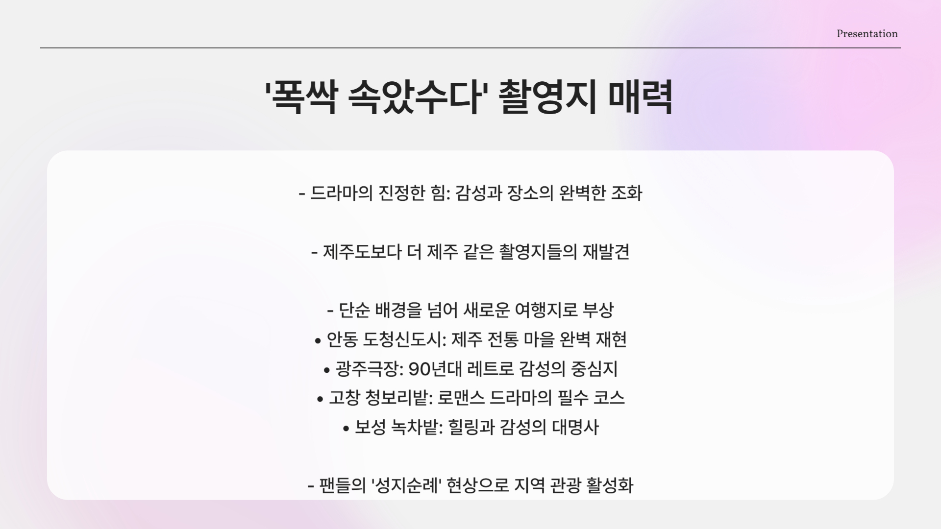 - ‘폭싹 속았수다’는 제주도 배경이지만 실제 촬영지는 전국 각지