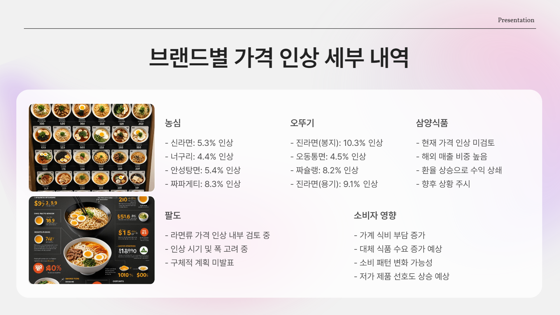- 신라면: 950원 → 1,000원 (5.3% 인상)